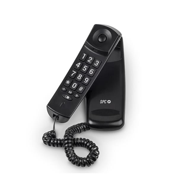 Teléfono fijo compacto, sencillo y elegante con teclas grandes, indicador luminoso de llamada entrante, 10 memorias indirectas y función rellamada.
